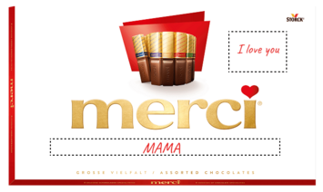 Pro originální dárek jednoduše vyber velikost balení merci Finest Selection a zadej text na přebal – a tvoje osobní merci je na světě!